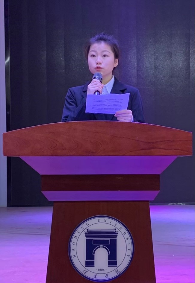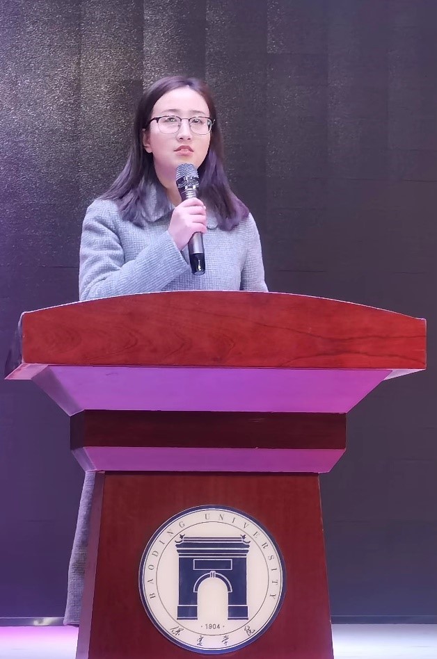 最后,2020级应用心理学专业张秀颖同学作为实习生代表发言,她表示,作为实习教师一定会严格遵守公司和实习单位的各项规章制度,尊师重教,在实习的过程中潜心向学,力争在实习生活中迅速成长为一名优秀教师。