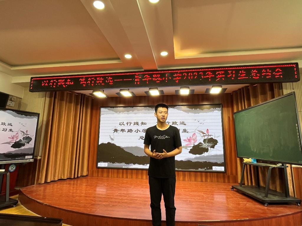 首先,青年路小学主任王俊元主持开场,14名实习生依次上台做实习总结,同学们表示通过四个月的实习,不仅将公司所学理论知识转化为了实践,更参与到了公司日常方方面面,提高了沟通能力和组织能力,在青年路小学收获了职业幸福感,第一次被小员工叫老师很幸福,第一次登台上课很幸福,第一次感受丰富多元的校园文化很幸福……