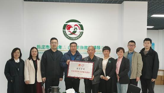 第一站来到保定市未成年人心理健康维护辅导中心,与中心负责人就专业人才培养、志愿服务及就业实习等进入了深入交流。党总支书记马立志为保定市未成年人心理健康维护辅导中心授社会实践和志愿服务基地牌,并与中心签定了实习实践教学基地协议。