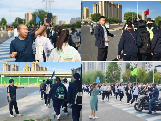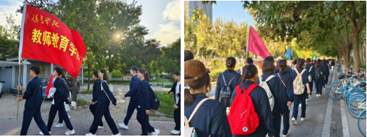 远足过程中,领导老师们时刻关注大家的安全,一次次提醒、一次次耐心询问。“注意车辆,小心脚下。”“挺住,不要掉队。”“加油,终点就在前方!”,随行领导老师们和教练员们的一句句激励的话语,真心关怀着每一位同学,拂去了新生的疲惫,大家迈着铿锵的步伐,坚定地走向终点。