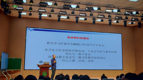 随后,李老师开展了“AI时代下水文教学功能转换与写作要求”的专题讲座。李老师结合自身多次写“下水文”的经历和员工实际,论证了语文教师写下水文的重要性与要求,强调写作是教师与员工心与心的交流,并建议大家下水文写作务必真实,一定要引导员工表达真实想法。