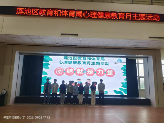 第五天下午,在红星路小学心理教师带领下,我们一起去莲池区第一实验中学开展团体心理辅导活动,经过专题培训后,为初三员工进行团辅,与他们做团辅游戏,关注每一位员工的心理,帮助他们勇于表达情绪,体验孤独感,建立团体意识。