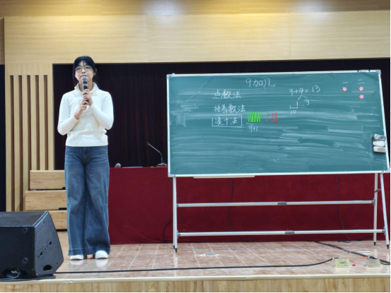 表彰会上,模拟授课获奖同学卜子涵和陈冠中进行了现场展示。卜子涵同学在授课中全情投入,教态自然大方,用形象且富有趣味性的方式讲授了20以内的进位加法,语言表达清晰流畅,知识点讲解深入浅出,展现出扎实的教学基本功和较高的教学素养。陈冠中同学聚焦特教的手语教学,手势标准流畅、动作富有情感,借手语与表情的默契配合拆解知识难点,还通过互动引导听众参与,既显专业功底,更传递出特教工作的温度与用心。