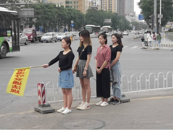 在指挥交通活动开展期间,每周六、日下午,在东风桥、小蜜蜂两个路口及火车站、保百大楼、七一路一带,都能看到我们志愿者的身影,在志愿服务活动中,志愿者们头戴志愿服务帽子,手执文明交通指挥旗,面带笑容,主动热情,认真履行职责,积极引导行人遵守交通规则。