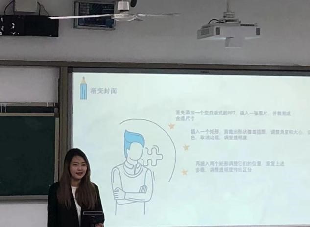 第二期培训人员为吴胤龙同学,讲解内容为蒙版的使用、边缘的柔化、无缝衔接、渐变文字和布尔运算。他先是为同学们展示了PPT成品效果,然后又进行了现场操作演示,深入浅出,易于理解。他还提到:只听是没有用的,还要自己去操作。每自己制作一次,都会有新的收获。随后,现场的同学们纷纷向他提问解疑,并出色地完成了自己的PPT作品。