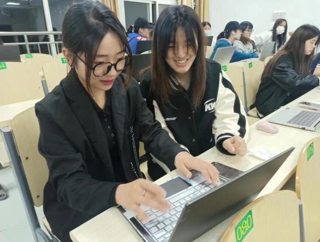 第三期培训人员为张佳瑞、于其力格尔和武鑫蕊三位同学,培训内容为图片沉浸式播放转场效果、转场特效、进度条动画。讲解员于其力格尔为大家进行了步骤讲解和演示,生动有趣的动画演示让同学们高呼精彩,同学们都认真听讲、积极提问。