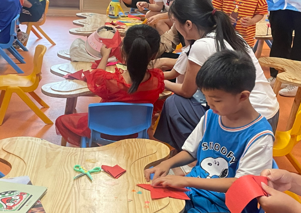 7月2日,社会实践团成员贾欣园为小朋友们开展了一场“我爱祖国——红色绘本阅读”主题活动。通过《闪闪的红星》绘本阅读、制作红星、革命故事我知道三个环节,小朋友们了解了发生在1932年江西省的红色历史故事,加深了对红星的情感,老师们勉励小朋友们懂得要像主人公东子一样树立爱国主义精神、坚定理想信念,要努力学习,成为祖国的栋梁。