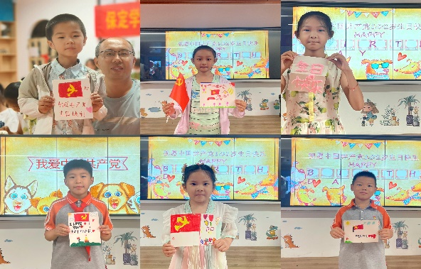 7月1日,社会实践团成员杨佳怡为小朋友们带来一场别出心裁的“生日会”——“生日快乐,我的中国共产党”主题活动。老师和小朋友们畅谈祖国百年变化,透过故事重走建党之旅,带领小朋友们感受在中国共产党的领导下,祖国日益昌盛、人民日益幸福的旷世佳绩。最后,小朋友们借助画笔、贴纸、彩泥为党送上了一份生日贺卡,写下了对党的祝福和感谢。在实践团其他老师的帮助下,小朋友们纷纷展示了自己的贺卡作品,合影留念。