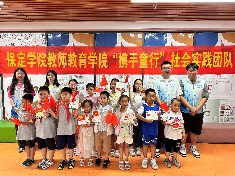 为庆祝中国共产党成立102周年,加强爱国主义教育,引领少年儿童感悟红色精神,培养儿童懂得感恩、奉献爱心意识,用心用情促进儿童成长。7月1日和7月2日,雷竞技RAYBET“携手童行”社会实践团队于保定市图书馆组织开展了“少年儿童心向党,红色教育伴成长”系列特别活动。