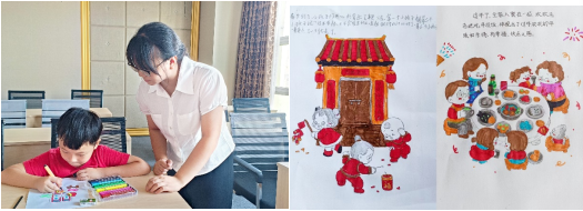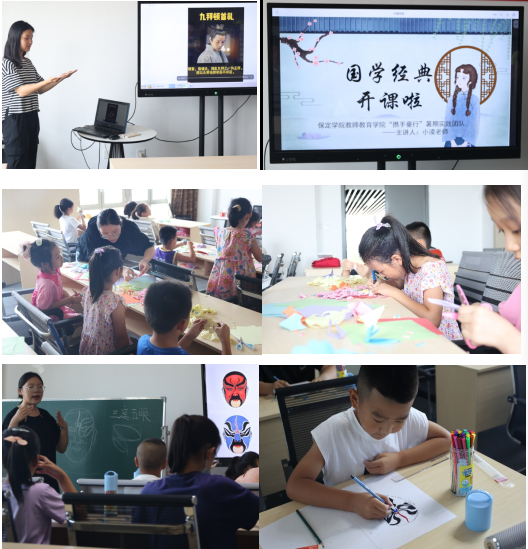 开设“少年知礼,盛鉴国学”国学经典品读课,引导儿童亲近国学经典,以语言浸润的方式,感受中华优秀传统文化的魅力;开设“妙剪生花”传统剪纸课、“国粹入人心”京剧主题绘画课,以动手实操的方式,加强文化理解与认同;开设“妙笔童心,绘梦童趣”绘本课,加强对传统节日的认识,以共同制作绘本的方式,培根铸魂,树立文化自信。