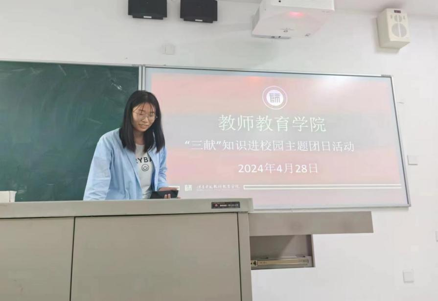 肖林彤主要从造血干细胞、人体器官捐献、无偿献血、献血流程以及“三献”的好处五个方面进行宣讲。