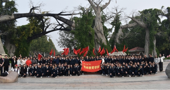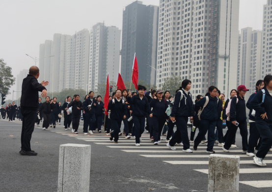 之后全体新生庄严宣誓,正式开启了13公里徒步征程。行进途中,同学们相互鼓励、团结协作,充分展现了坚韧品格与团队精神。抵达保定植物园后,通过素质拓展活动凝聚力量,更在“逐迹寻光,致敬支教”故事探寻活动中,深入学习井慧芳、李桂枝等优秀前辈扎根西部的感人事迹,深刻感悟“坚守”“奉献”内涵,坚定从教理想。行程尾声,同学们走进了西部支教毕业生群体事迹展馆,在一段段真实的文字与图像中,切身感受榜样力量,进一步筑牢了为党育人、为国育才的初心使命。